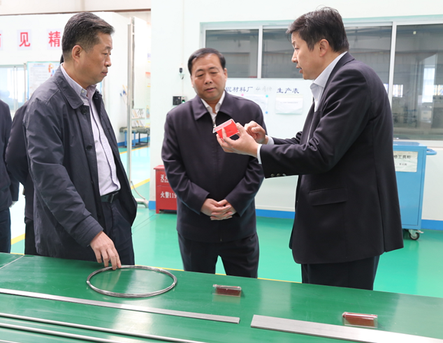 4月12日(周三)上午,副省长姜锋在省政府办公厅、省工信厅相关负责人的陪同下莅临公司控股子公司西安诺博尔稀贵金属材料有限公司调研“自主化核电站堆芯关键材料国产化项目”实施情况,公司巨建辉董事长、程志堂副董事长、郑学军常务副总等出面接待了来宾。